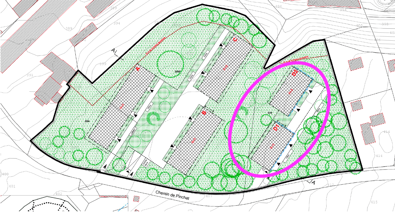 A propos des spécificités du projet de Pinchat: la serre en toiture a été abandonnée, pour une question de coût et parce qu’elle ne contribue plus à la hauteur attendue au concept énergétique du projet; le tockage saisonnier de chaleur par le biais de gros accumulateurs d’eau chaude produite par des panneaux solaires thermiques est toujours dans la course, mais dans une version réduite, plus équilibrée entre coût et gain écologique; la structure et l’isolation avec un double mur de briques (l’un porteur, l’autre isolant) reste un élément identitaire fort du projet; quant à la production centralisée du froid (les réfrigérateurs individuels standards dans les appartements étant remplacés par un compresseur unique au sous-sol qui produit et fait circuler le froid dans le bâtiment, de la même manière que le chaud circule pour le chauffage et l’eau chaude sanitaire, afin de refroidir des armoires isolées) est très innovante dans un bâtiment de logements et doit encore prouver sa faisabilité, tant d’un point de vue technique que financier.